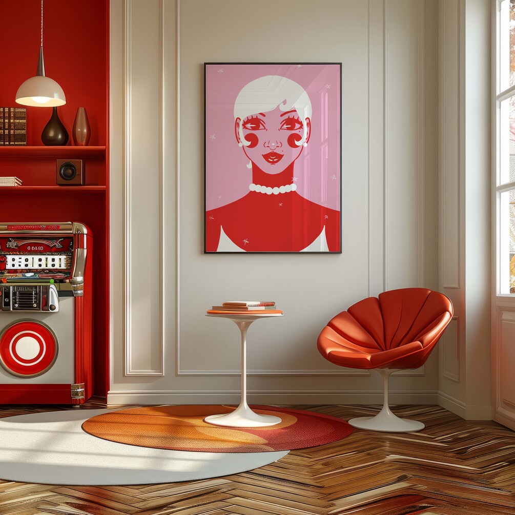 Pearls, Retro digital wall art, character illustration for home decor